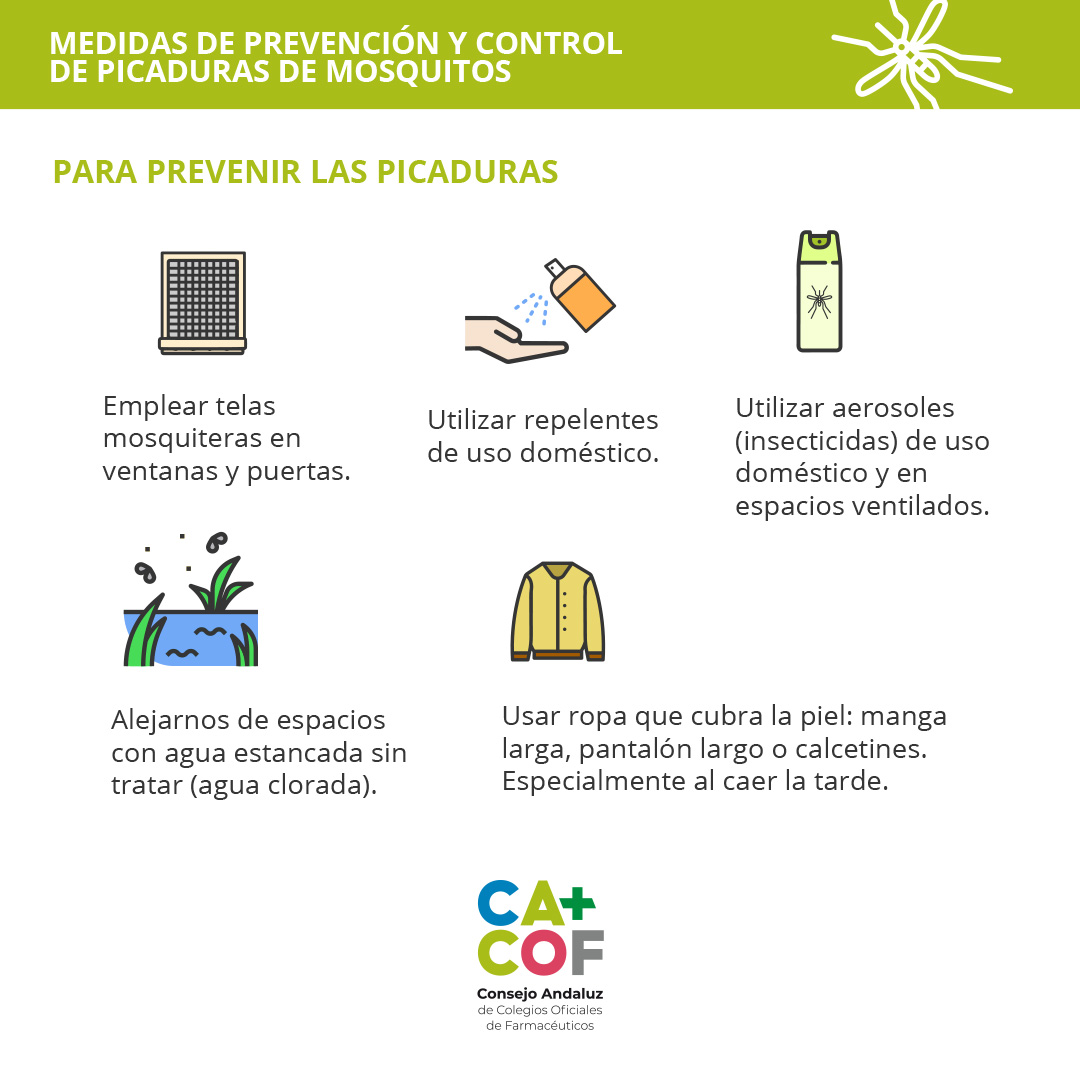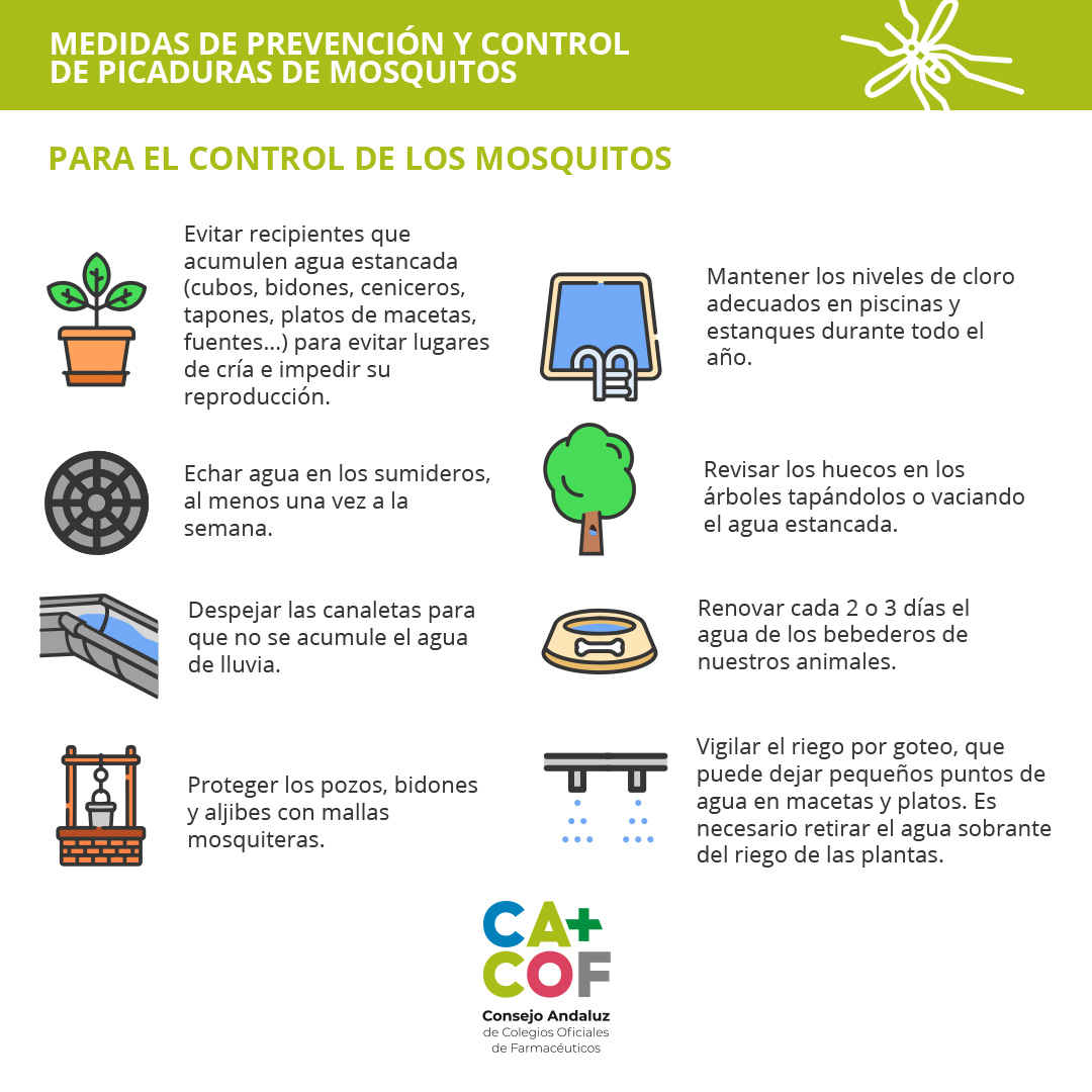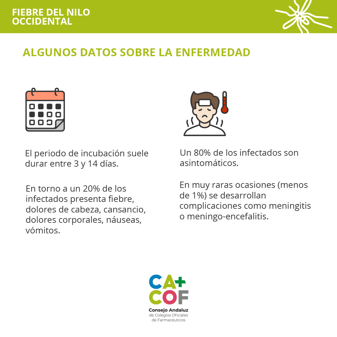 Con motivo de la detección en circulación del virus de la Fiebre del Nilo Occidental en varios municipios de Andalucía durante el verano, el CACOF ha editado el material actualizado de la campaña “Prevención de la Fiebre del Nilo Occidental”, con los que la farmacia comunitaria andaluza quiere informar sobre qué es y en qué consiste esta enfermedad, así como ofrecer varios consejos y recomendaciones útiles para prevenirla, evitando principalmente las picaduras de mosquitos.