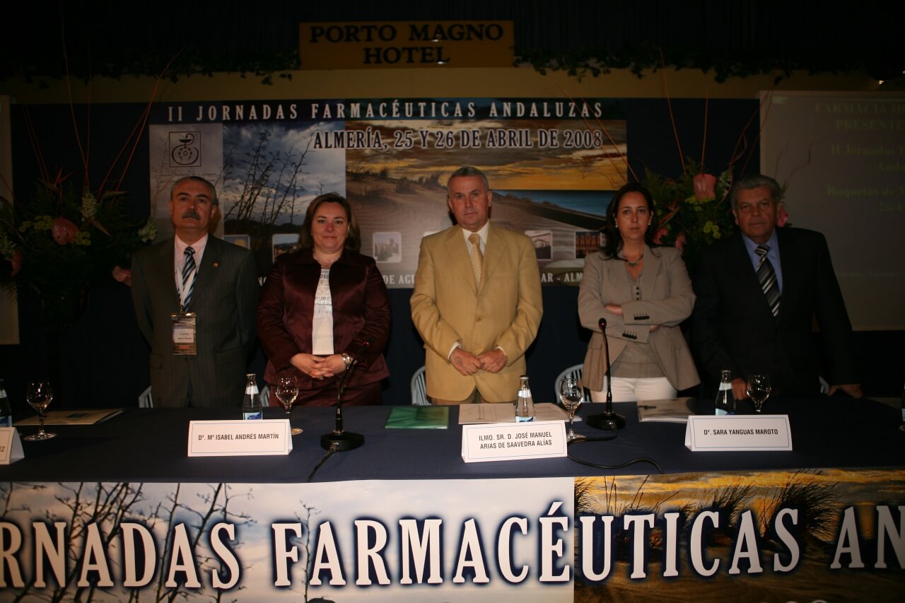 Roquetas del Mar (Almería) fue la sede escogida para la celebración de las segundas Jornadas Farmacéuticas Andaluzas durante los días 25 y 26 de abril de 2008. Sobre la mesa de debate, se trataron temas como el desabastecimiento de medicamentos y la trazabilidad, la Ley de Sociedades Profesionales o la Ley de Farmacia andaluza y su desarrollo. También tuvieron cabida sesiones dedicadas a conocer la realidad del farmacéutico en ámbitos como el de la salud pública y la Atención Primaria, así como otras dedicadas a conocer de primera realidad la situación que viven los profesionales del gremio en otros países de la Unión Europea o Argentina, que estuvo representada por Manuel Agotegaray, presidente de la Federación Farmacéutica de la República Argentina y encargado de ofrecer la principal conferencia del encuentro.